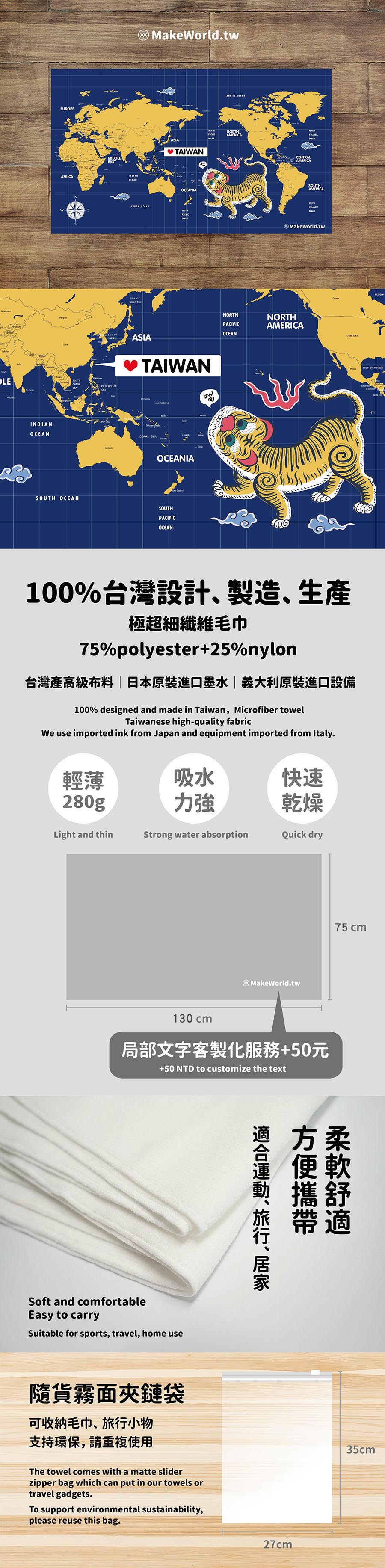 1. 100%台灣生產,輕薄快乾好攜帶,不易產生異味