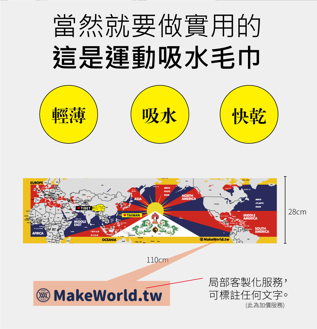 規格型號 Make World 運動毛巾 (萬國旗-圖博/雪山獅子)