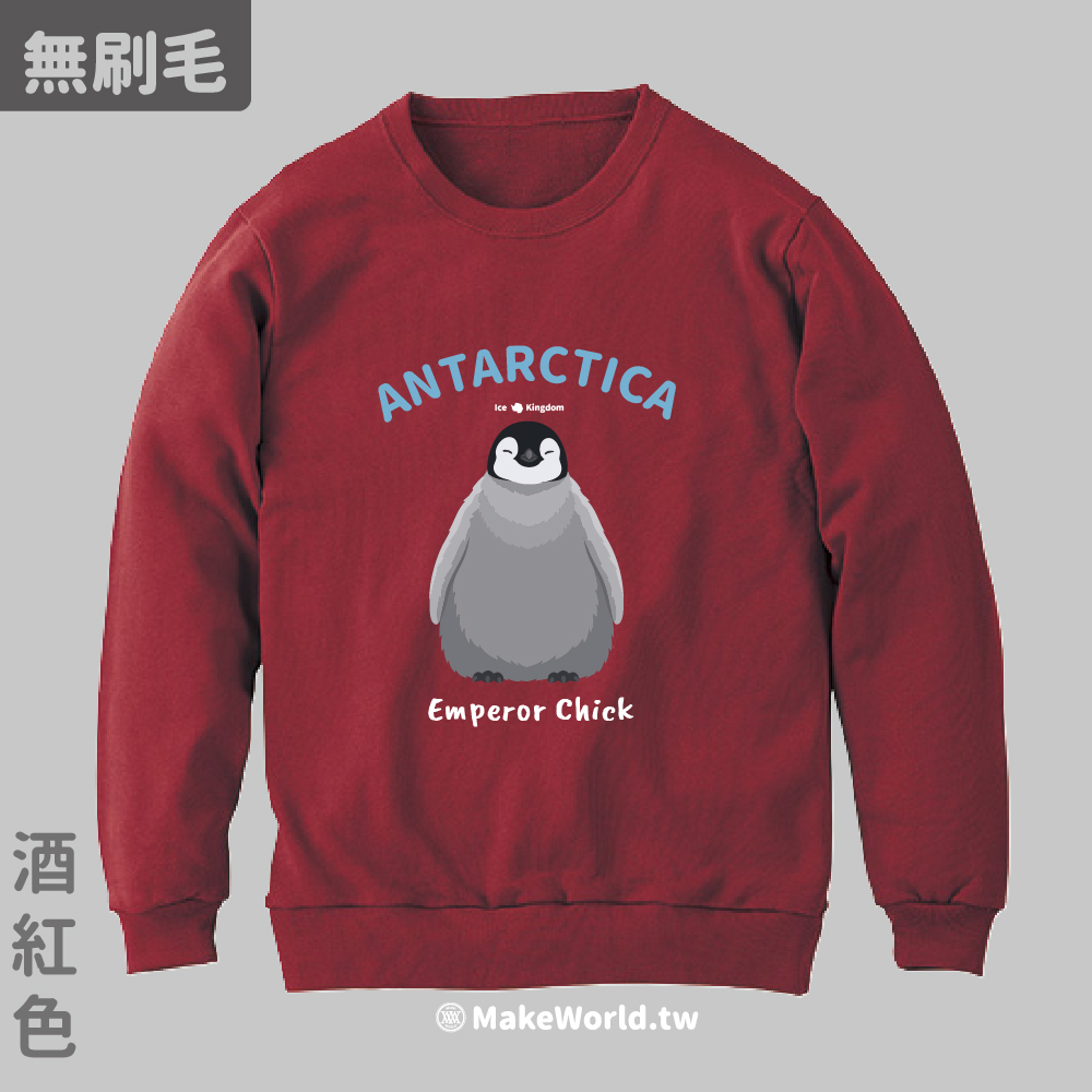 規格型號 MakeWorld.tw 純棉無刷毛大學T (皇帝企鵝寶寶)
