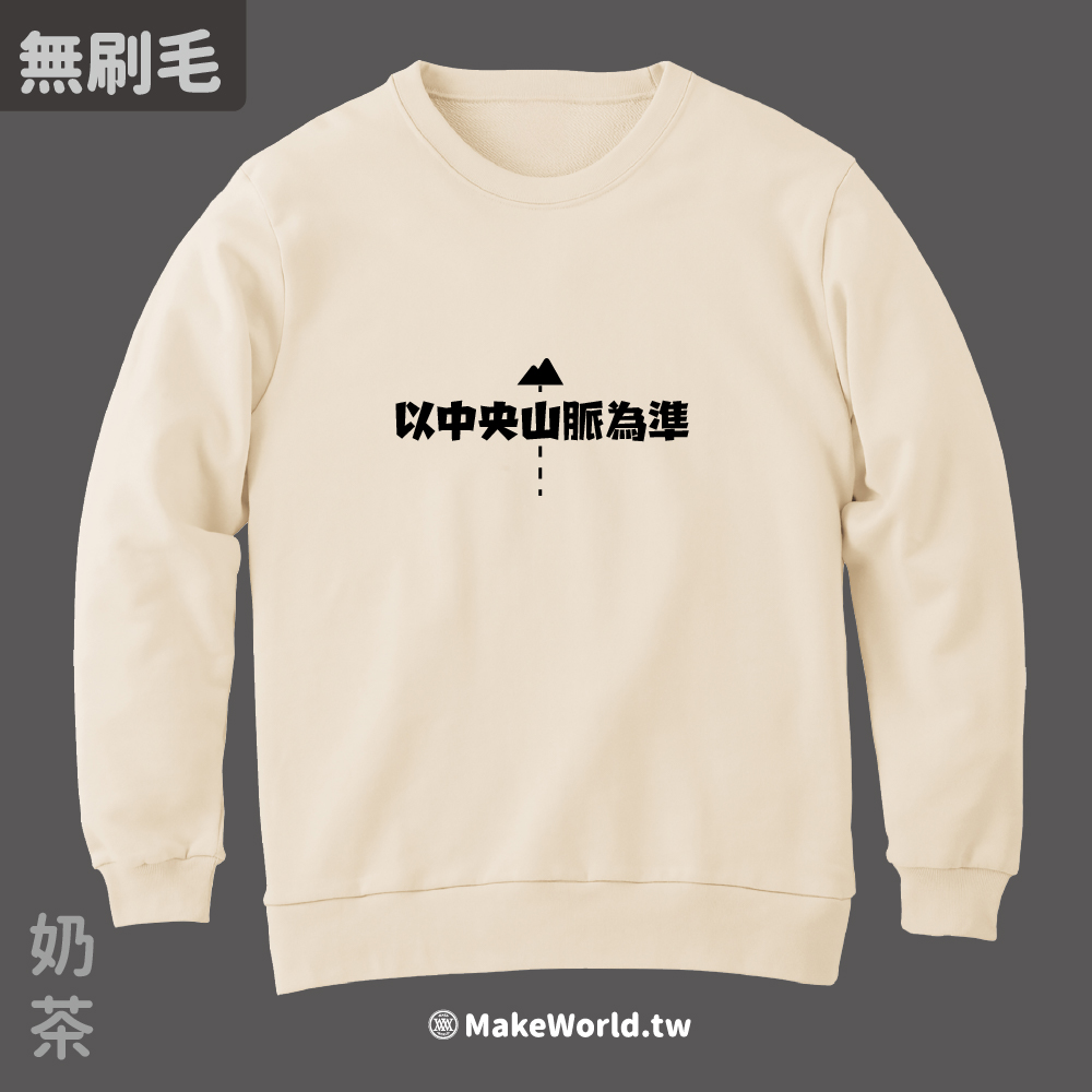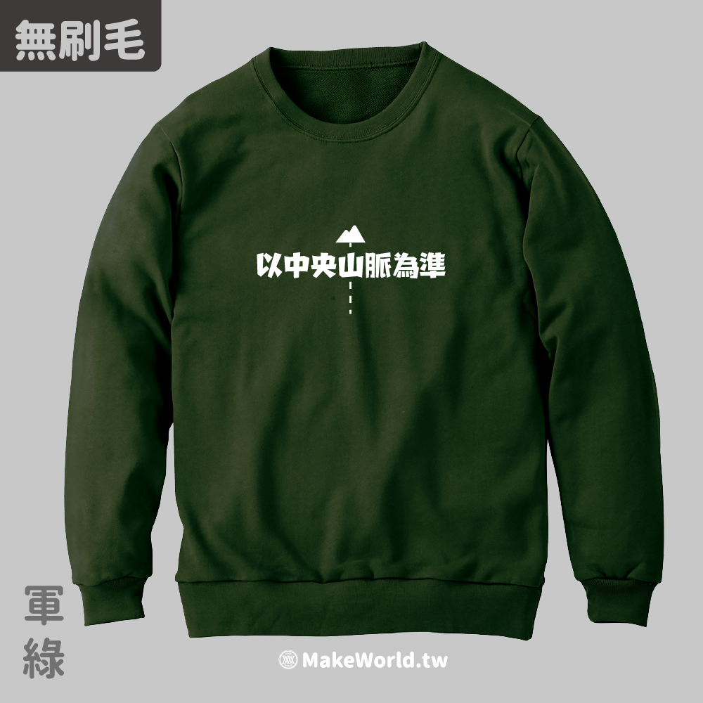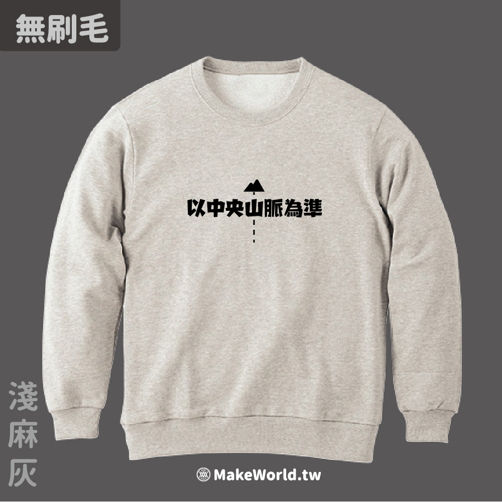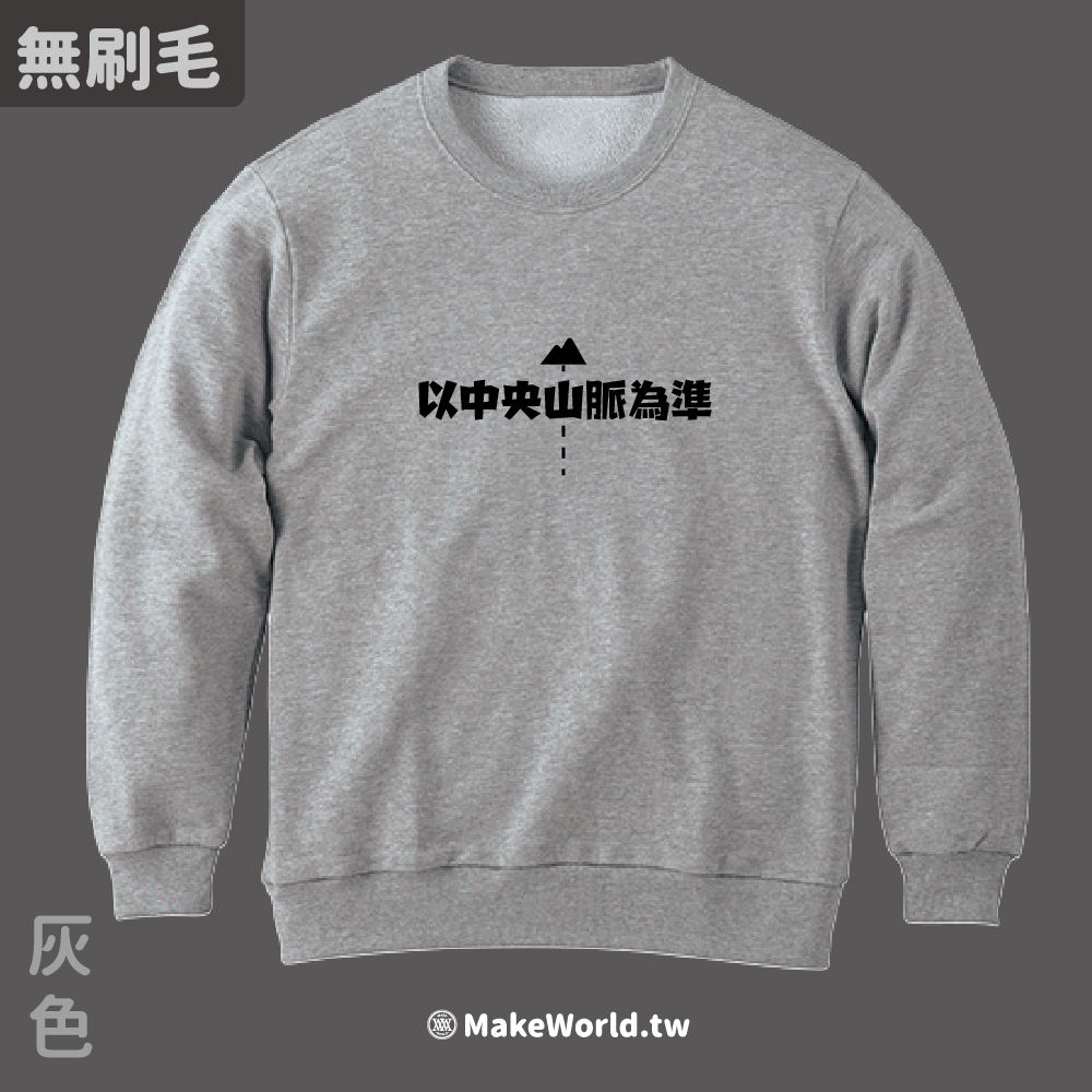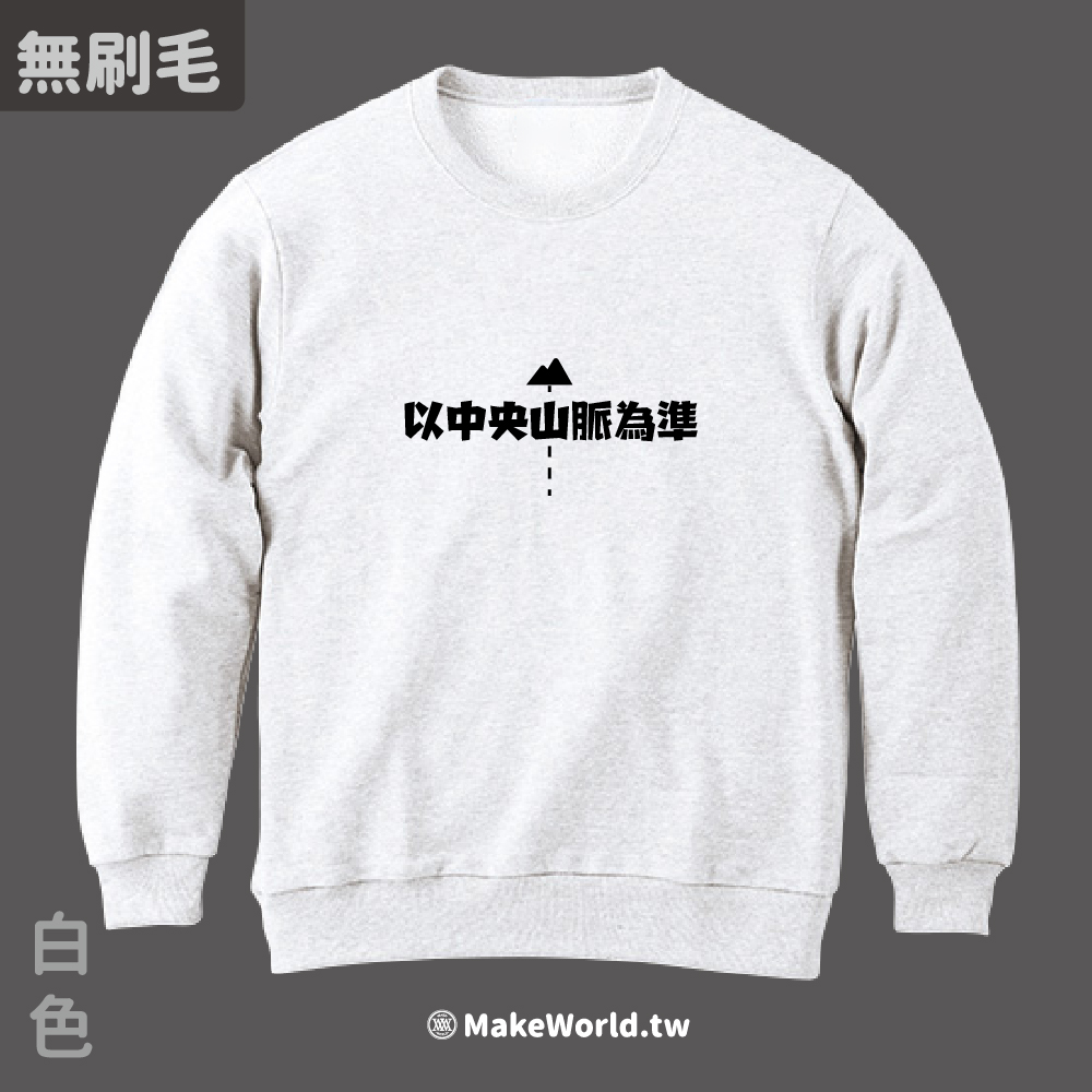 規格型號 MakeWorld.tw 純棉無刷毛大學T (以中央山脈為準/虛線版)