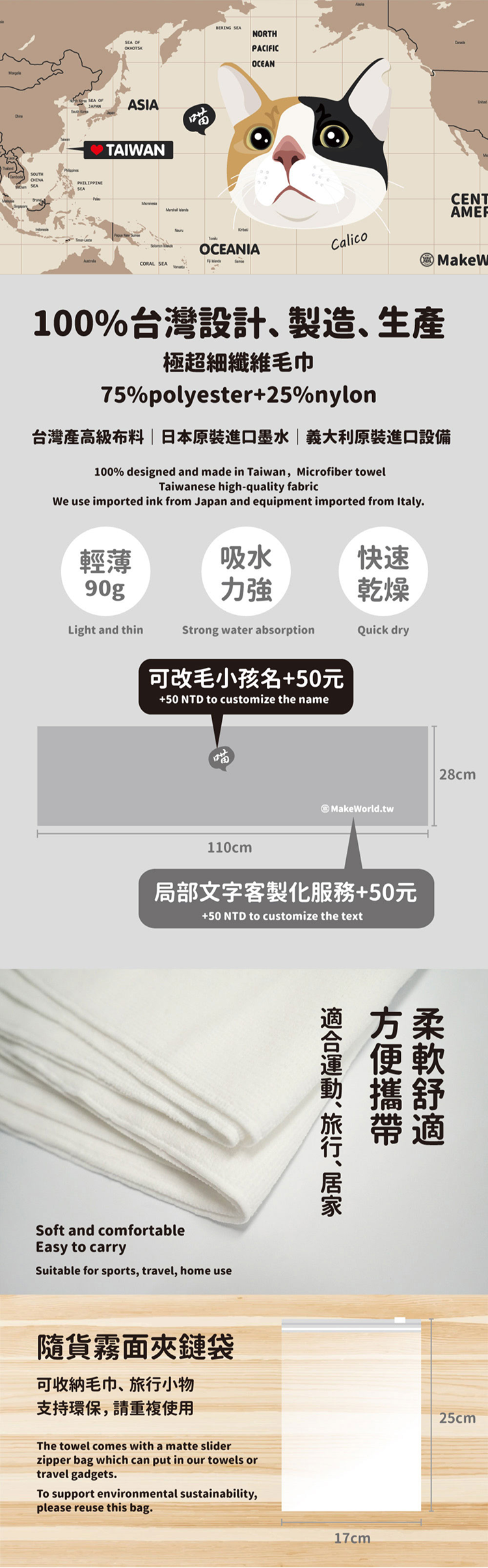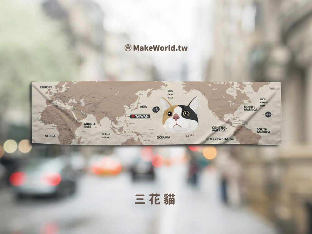 規格型號 Make World 運動毛巾 (寵物-三花貓)