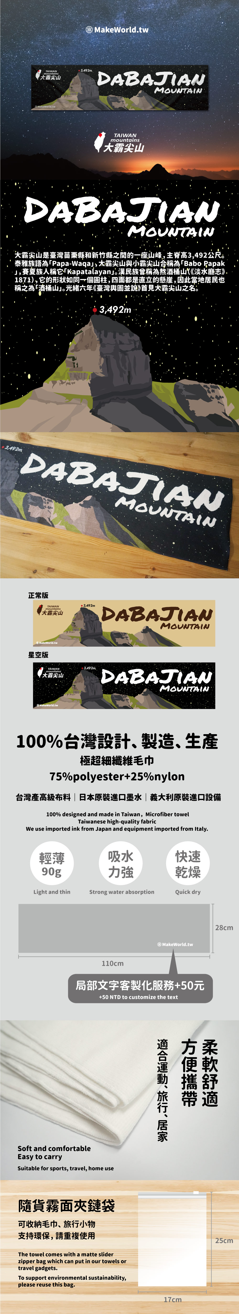 規格型號 Make World 運動毛巾 (台灣山脈-大霸尖山/星空款)