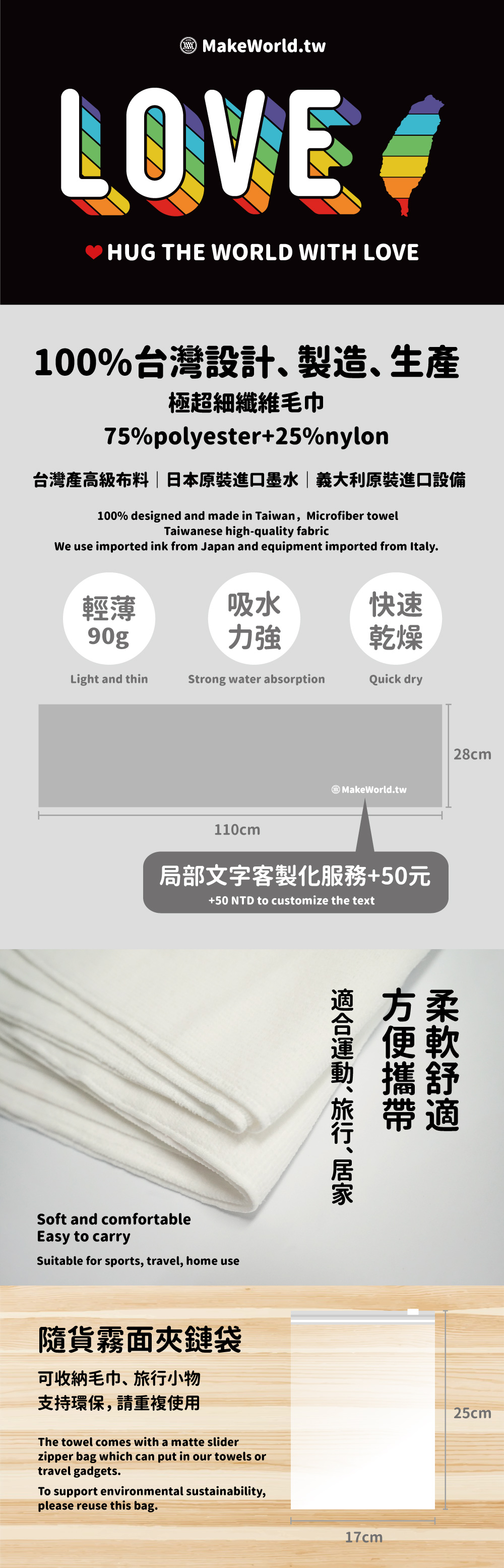 規格型號 Make World 運動毛巾 (彩虹-LOVE is LOVE/白)