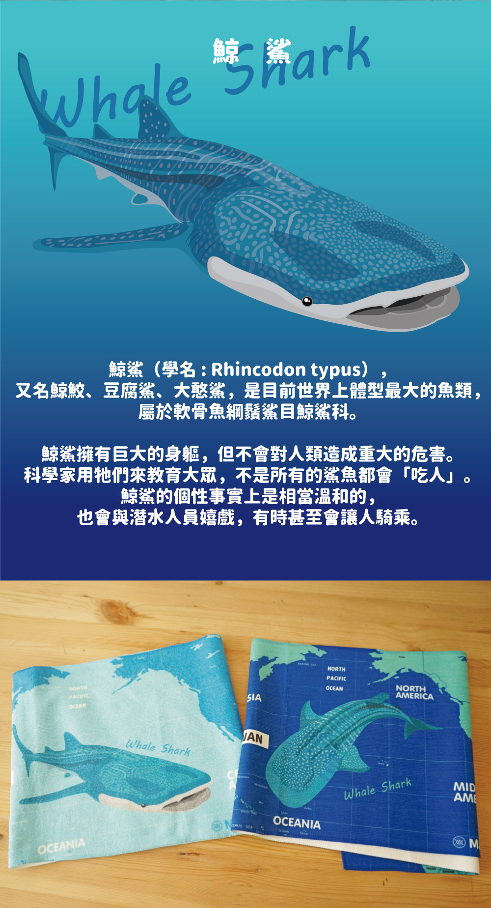 規格型號 Make World 運動毛巾 (生態-張嘴鯨鯊/漸層)