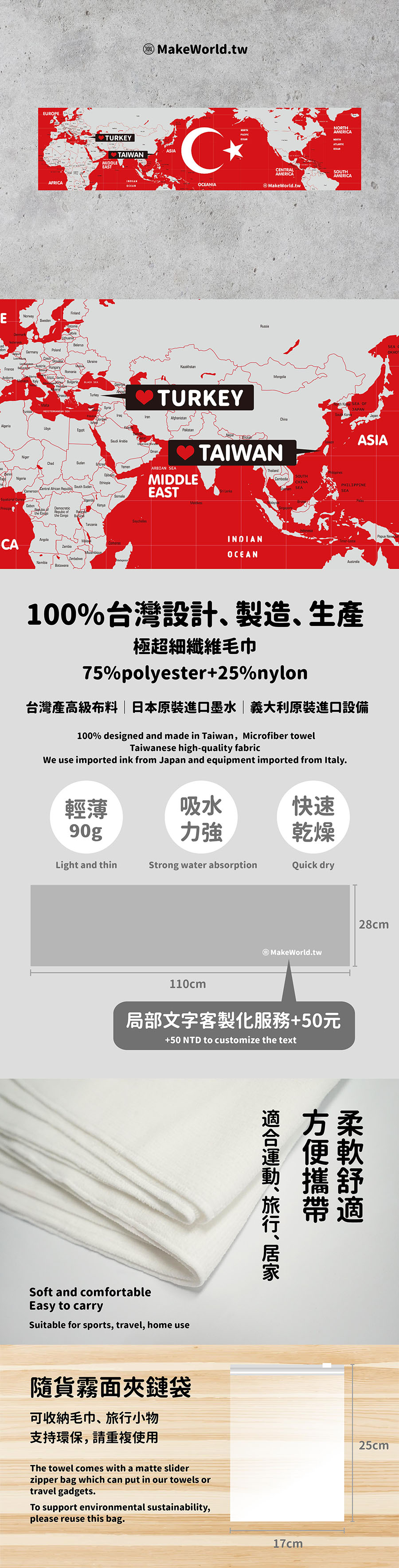 地圖製造MakeWorld.tw|外銷全球運動毛巾-訂製你的高質感專屬毛巾|世界地圖,客製化毛巾