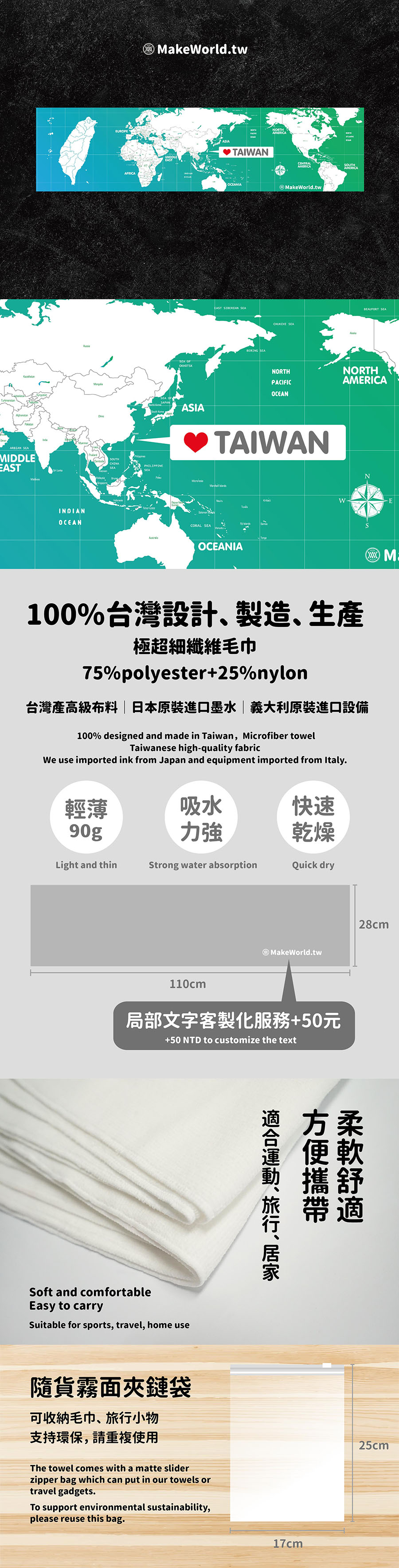 規格型號 Make World 運動毛巾 (經典配色-漸層台灣)