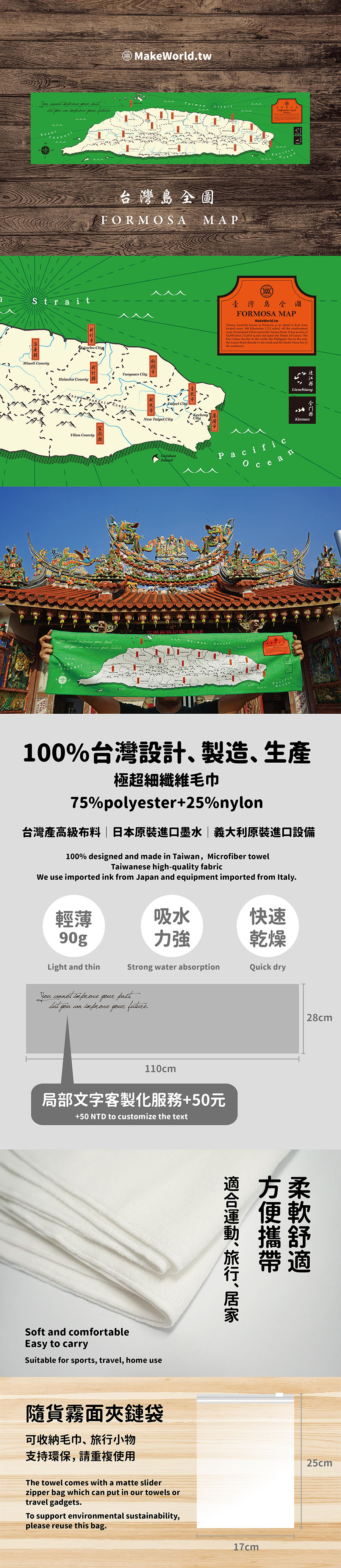 規格型號 Make World 運動毛巾 (台灣島/戶外綠)