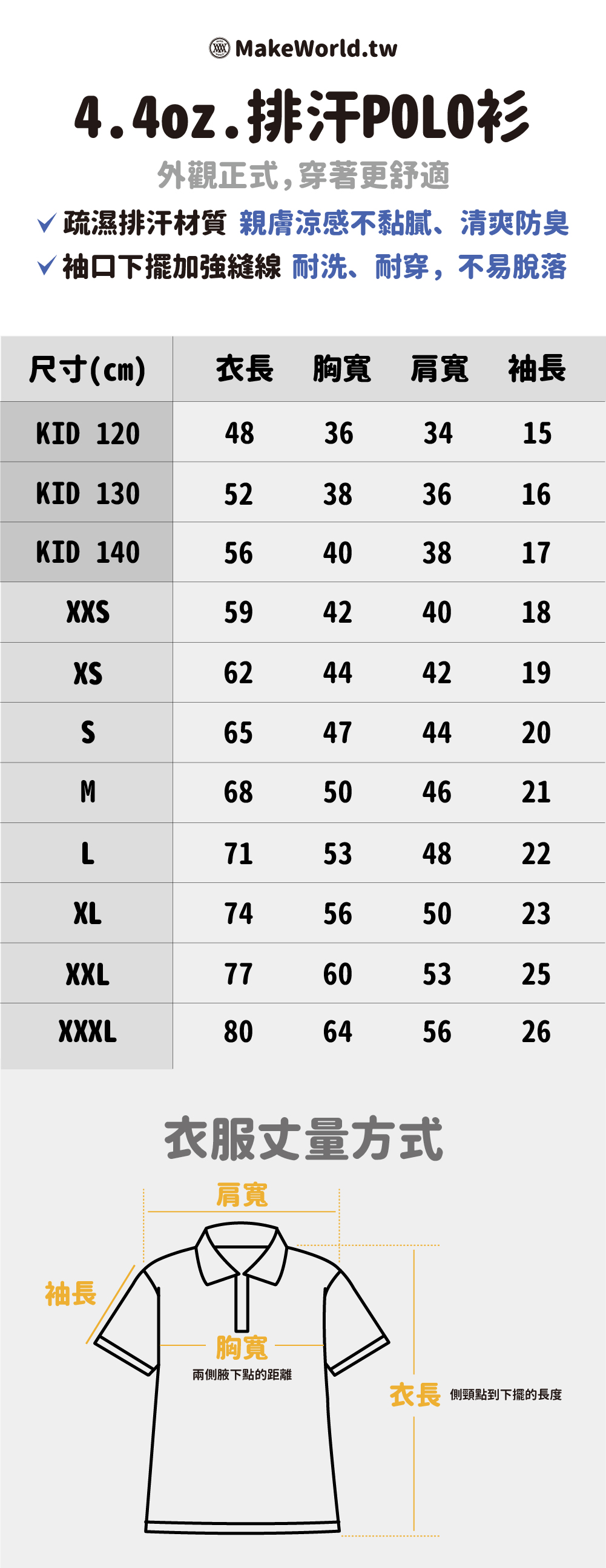 規格型號 Make World 排汗衫 (代客印製)