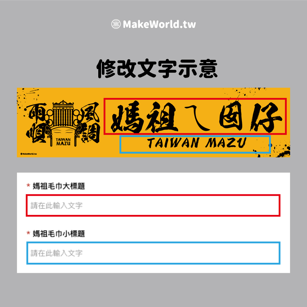 台灣原創設計,100%台灣生產布料,媽祖毛巾首選推薦地圖製造製做,白沙屯媽祖進香、大甲媽祖繞境、北港媽祖等香客信徒口碑好評推薦媽祖毛巾、燙金媽祖衣服。
