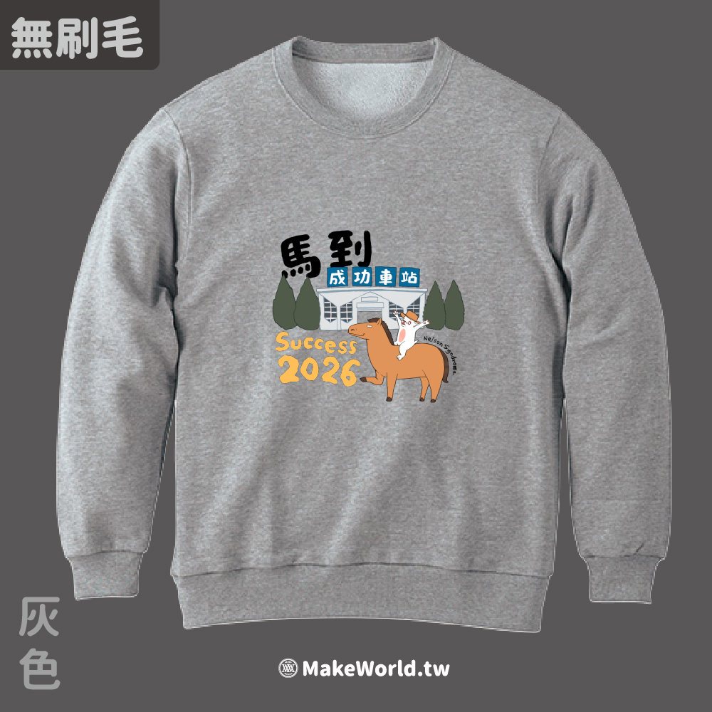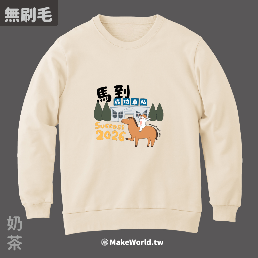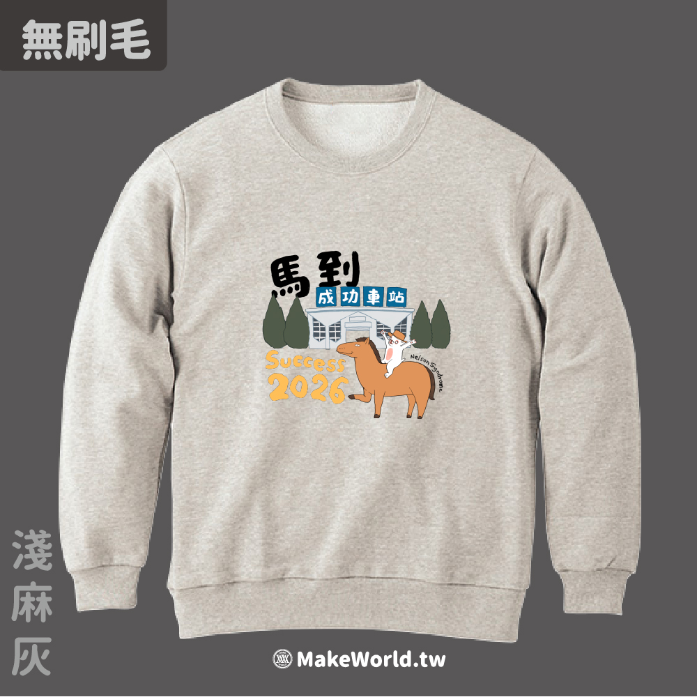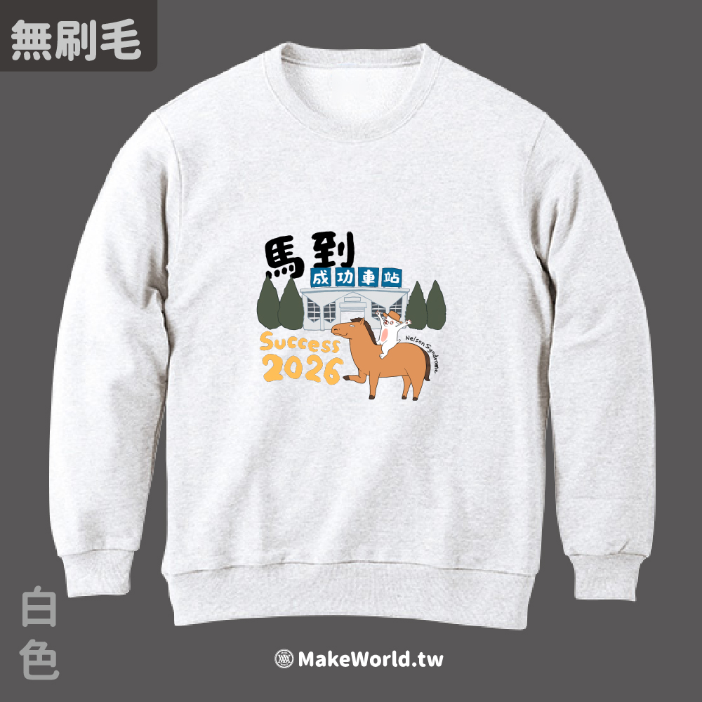 規格型號 MakeWorld.tw 純棉無刷毛大學T (尼爾森式症/馬到成功)
