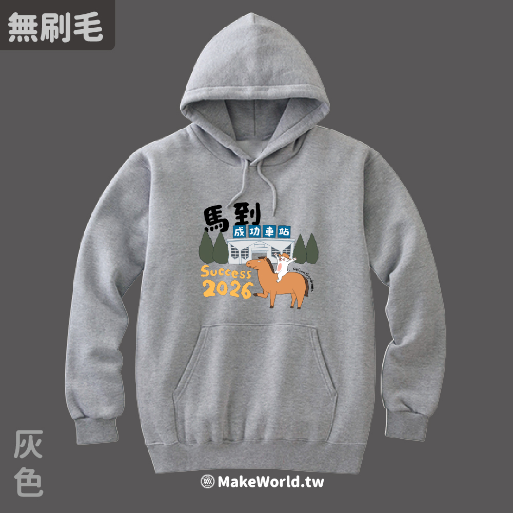 規格型號 MakeWorld.tw 純棉無刷毛帽T (尼爾森式症/馬到成功)