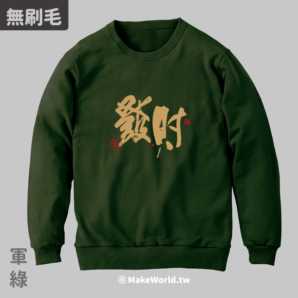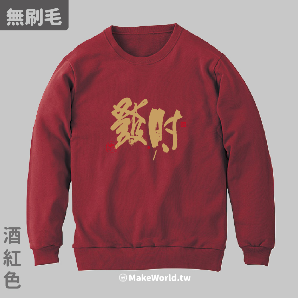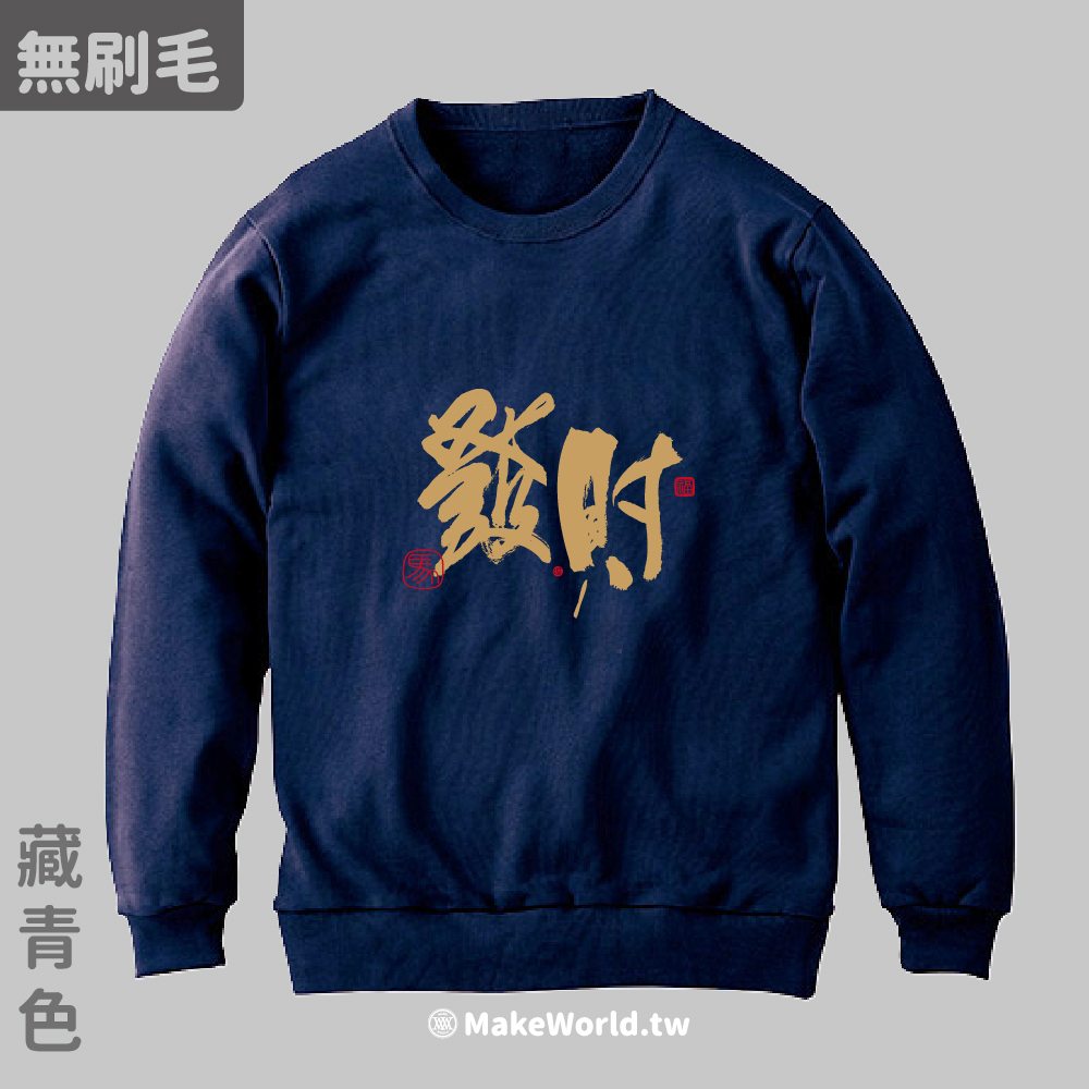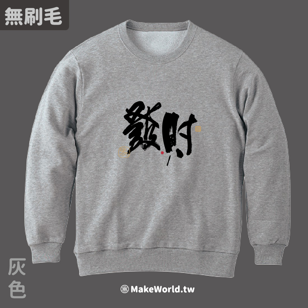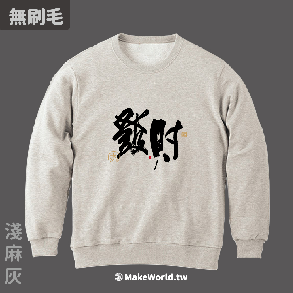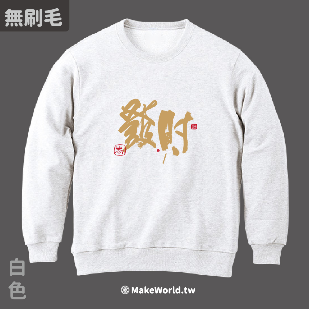規格型號 MakeWorld.tw 純棉無刷毛大學T (克萊兒寫寫字/發財)