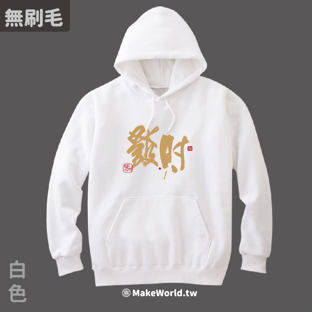 規格型號 MakeWorld.tw 純棉無刷毛帽T (克萊兒寫寫字/發財)
