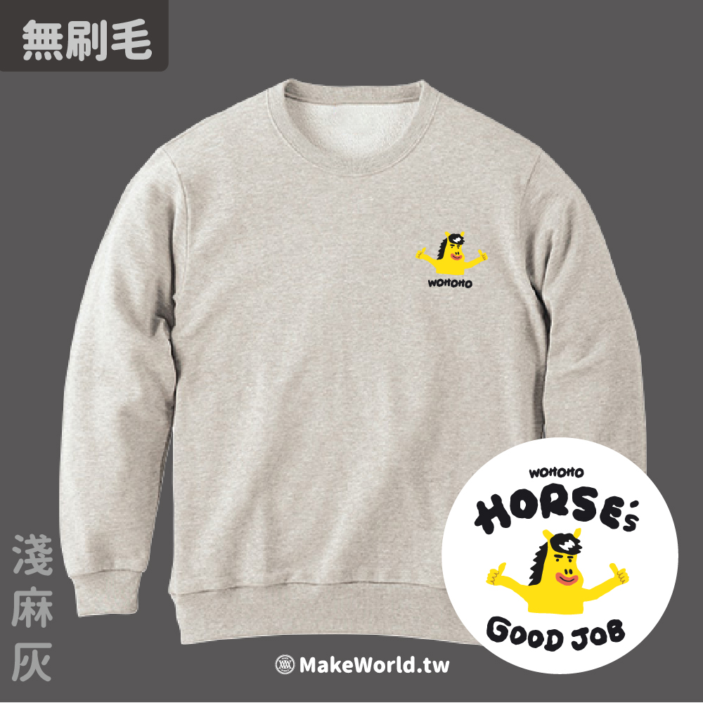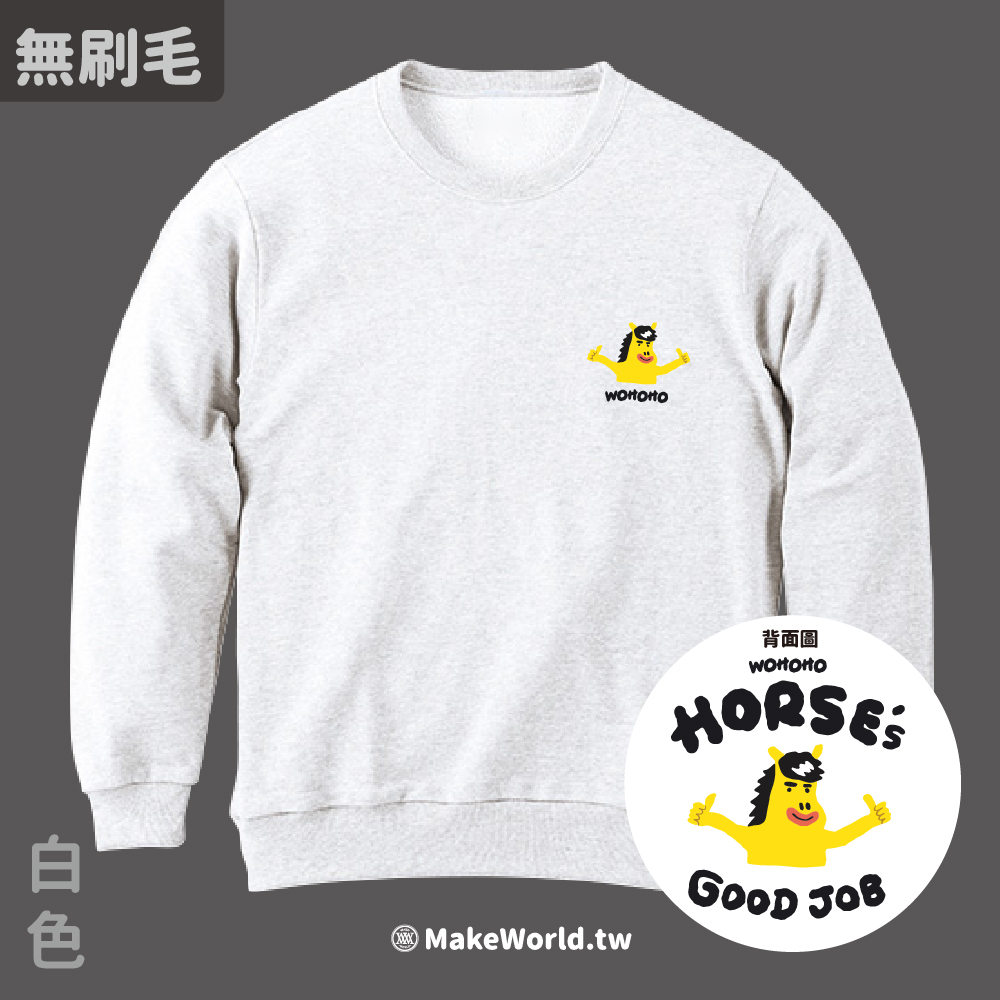 規格型號 MakeWorld.tw 純棉無刷毛大學T (鐵雄Keno/馬的好讚)