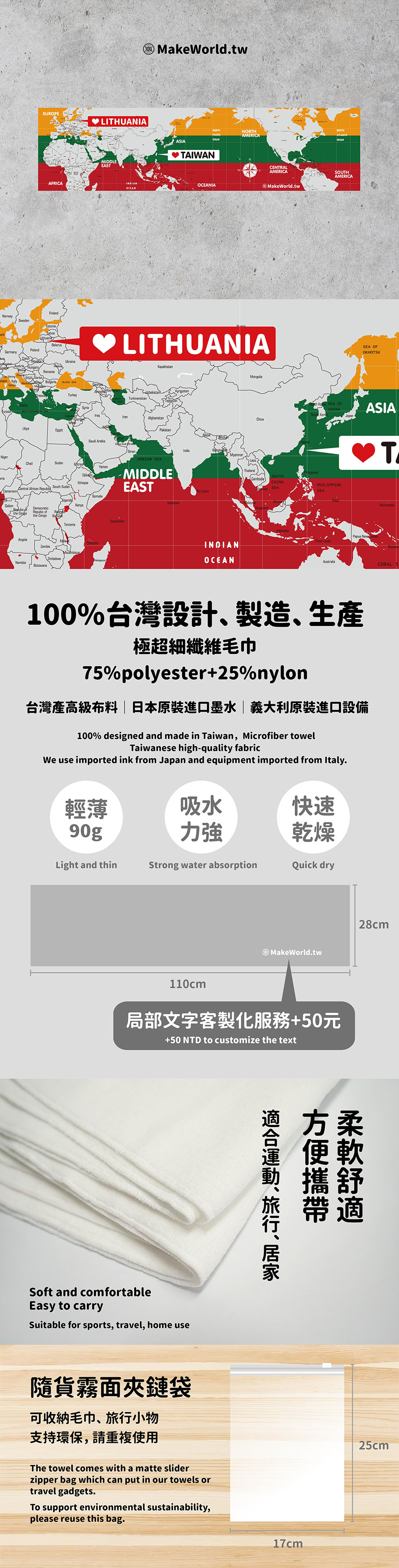 地圖製造MakeWorld.tw|外銷全球運動毛巾-訂製你的高質感專屬毛巾|世界地圖,客製化毛巾