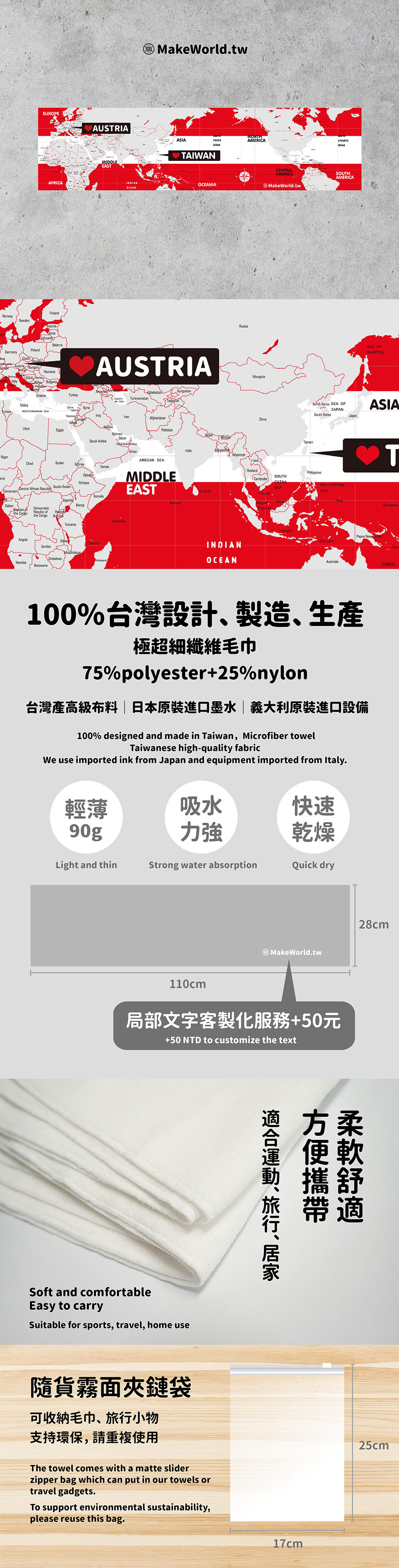 地圖製造MakeWorld.tw|外銷全球運動毛巾-訂製你的高質感專屬毛巾|世界地圖,客製化毛巾