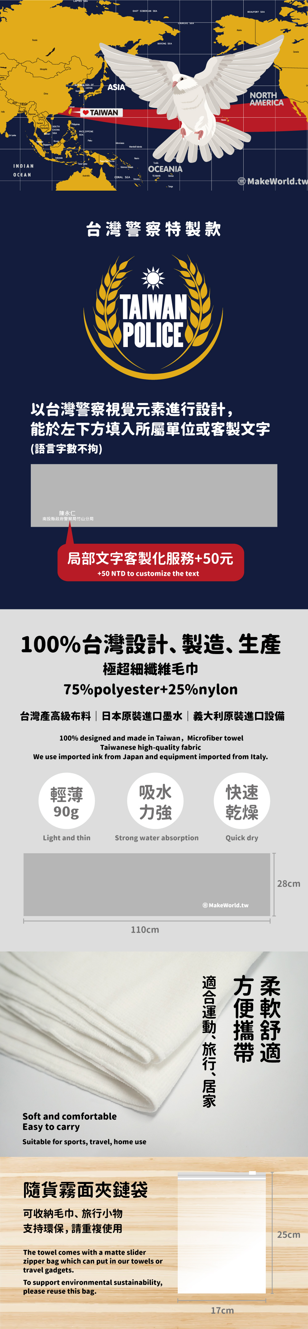 規格型號 Make World 運動毛巾 (台灣警察)