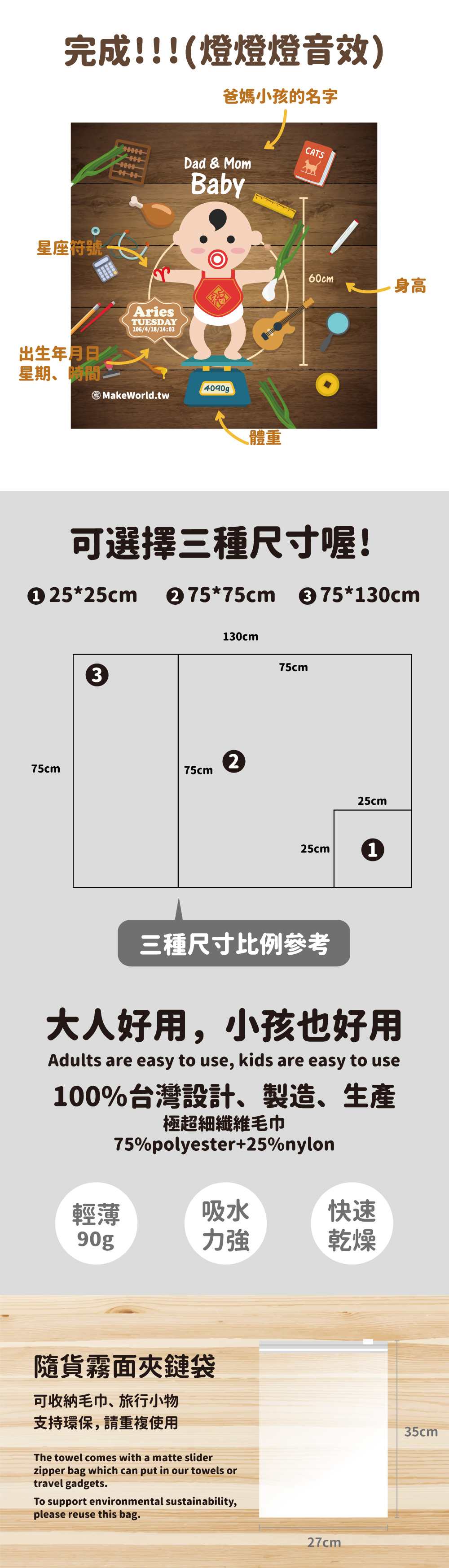 Make World 寶寶浴巾 (你的孩子-抓週小孩)