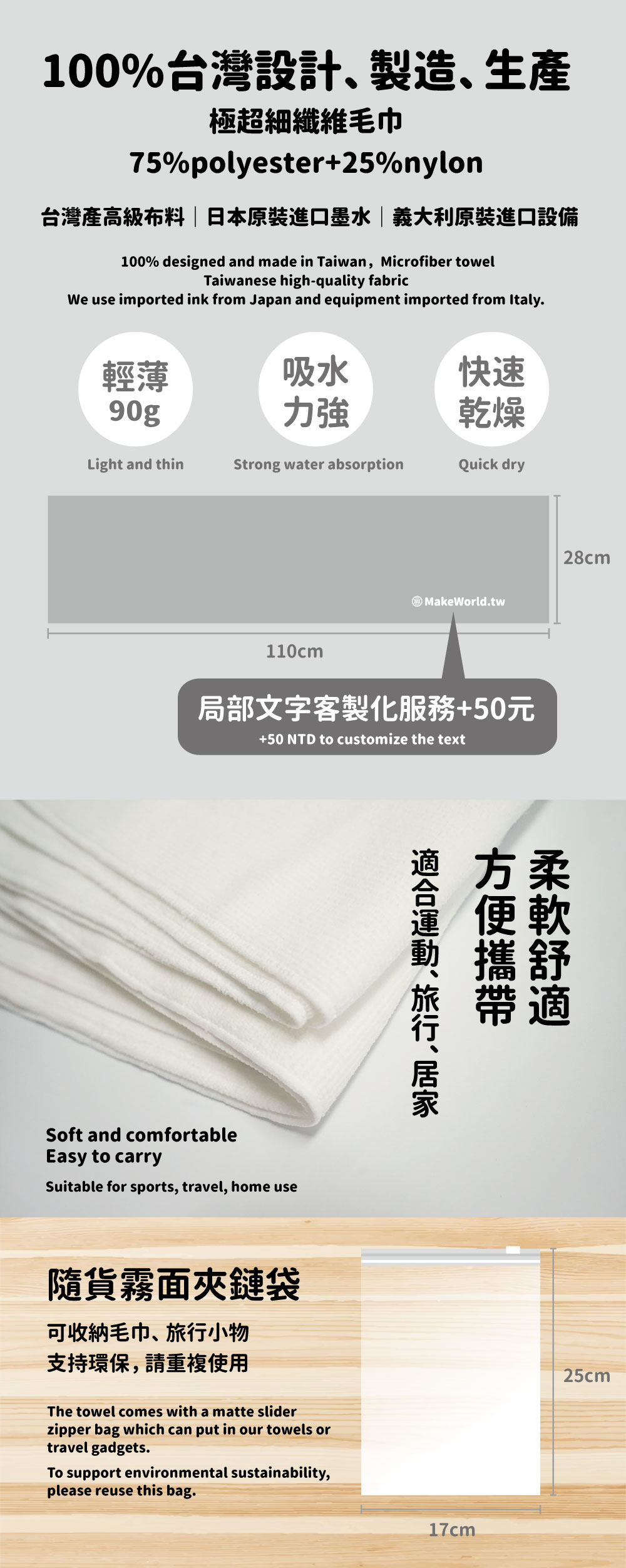 規格型號 Make World 運動毛巾 (特殊主題-台灣魂)