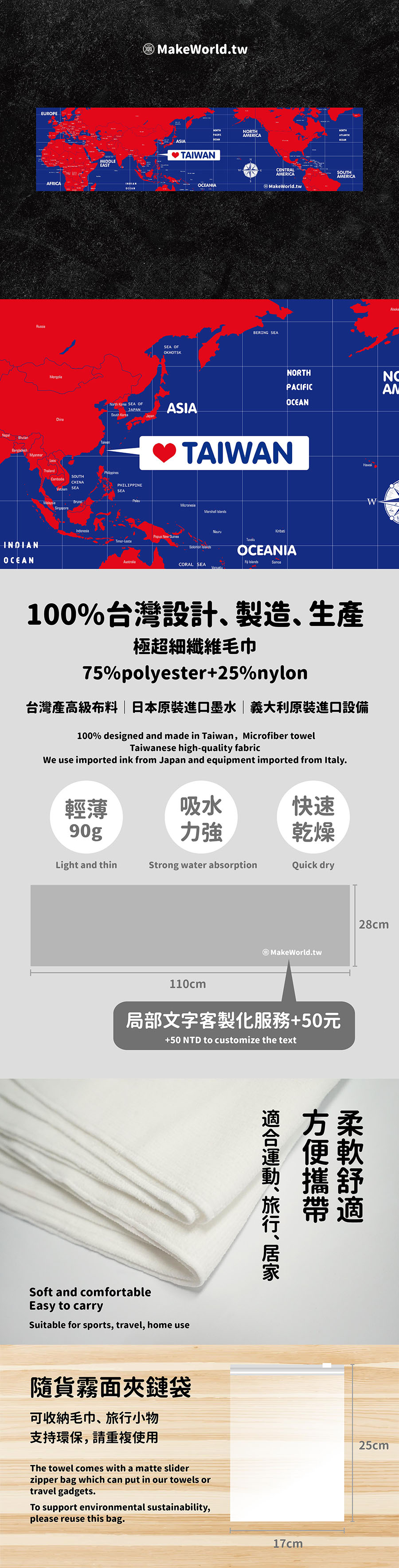 1. 100%台灣生產,輕薄快乾好攜帶,不易產生異味
